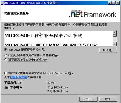1. 打開Microsoft.NETFramework3.5完整版.exe文件時,軟件會自動檢測安裝環境,這部分是自動完成的。