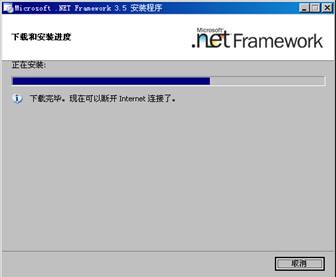 4. 進度條運行完后,表示Microsoft.NETFramework3.5已經安裝成功
