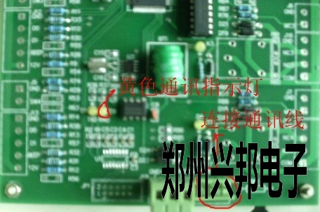 用通訊線將主控器和電腦連接好后,要注意通訊線的正負極不能接反,如果如圖四所示位置的黃色指示燈常亮的話說明通訊線路沒有連接正確,如果通訊線路連接正常的話,黃色指示燈是處在熄滅狀態的。(如圖四所示:)