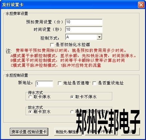 如果設置管理卡修改水控機費率,設置完費率后,只需點擊“費率設置卡”即可,不需要點擊“控制設置卡”