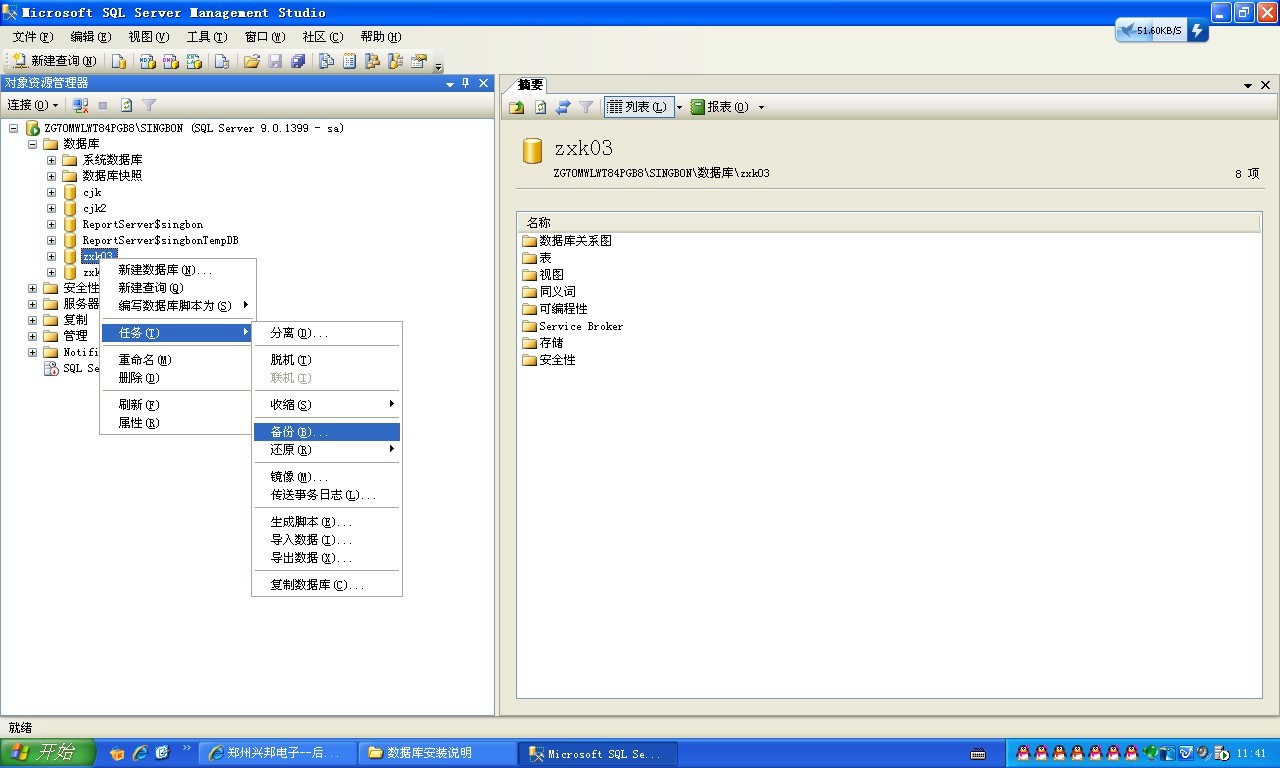 在SQL SERVER 2005內進行 備份操作