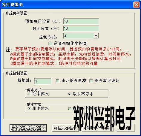 注:簡版水控機(jī)用費(fèi)率設(shè)置卡修改費(fèi)率,聯(lián)網(wǎng)水控既能用軟件設(shè)置費(fèi)率,也能用管理卡設(shè)置費(fèi)率