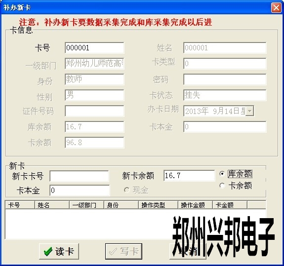 2)若采集時(shí)以窗口及時(shí)間為準(zhǔn),補(bǔ)辦時(shí)可選擇按卡余額補(bǔ)辦,但也要保證數(shù)據(jù)及時(shí)準(zhǔn)確的采集,若在補(bǔ)辦前數(shù)據(jù)沒有完全采集,補(bǔ)辦時(shí)的金額也是不準(zhǔn)確的。