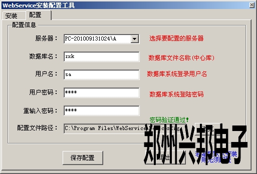 配置文件路徑:選擇WebService路徑下的(步驟五中選擇的webservice路徑)Web.config 單擊【保存配置】按鈕。