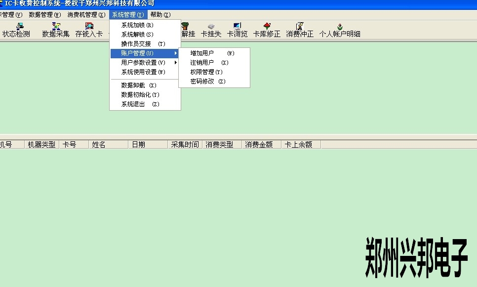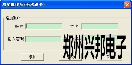 1. 打開485售飯機軟件--系統管理--賬戶管理--增加用戶,可以輸入賬戶、姓名、密碼,然后點添加后關閉此對話框即可。