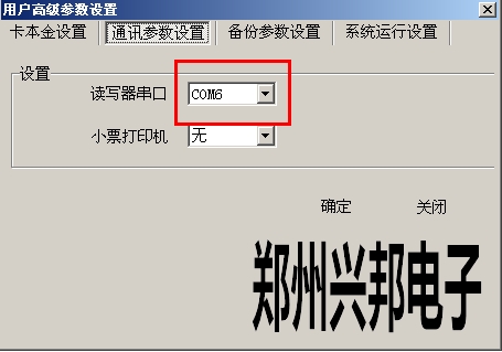 解決方法:經(jīng)詢問,電腦重裝過軟件,重裝后讀卡就出現(xiàn)這個(gè)錯(cuò)誤了,軟件重裝后要重新設(shè)置讀卡器的端口,設(shè)置讀卡器端口是在軟件中的  系統(tǒng)管理-用戶參數(shù)設(shè)置-用戶高級(jí)參數(shù)設(shè)置-通訊參數(shù)設(shè)置-讀寫器串口中,如下圖所示: