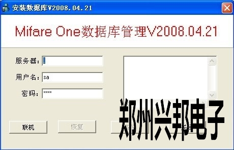 4、先點擊聯機按鈕,右邊消息框中提示連接數據庫成功后,點擊恢復按鈕,當數據庫恢復完畢后,再次打開軟件系統就可以正常登陸了。