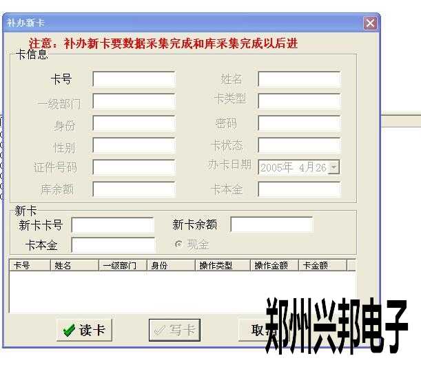 2、把新卡放在IC讀卡器上,然后在軟件里有個卡管理--補辦新卡,
