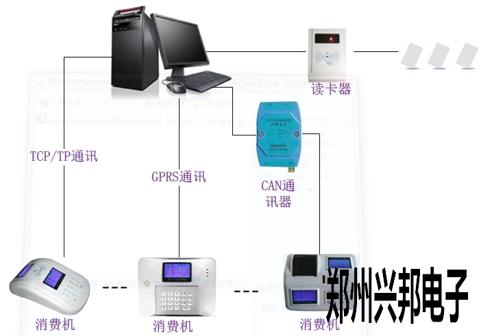 IC卡中文液晶消費機的網(wǎng)絡布線圖