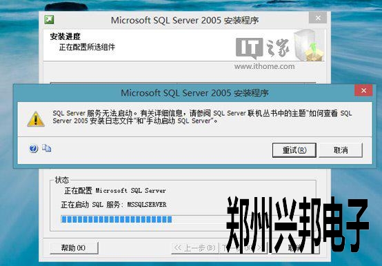 6、當(dāng)出現(xiàn)Sql Server 2005無法啟動(dòng)時(shí),這個(gè)時(shí)候就不先點(diǎn)擊重試或者取消。