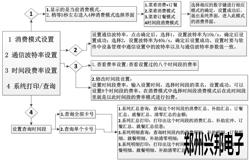 打開中文液晶售飯機。開機,在待機模式下按匯總鍵進入系統功能設置界面,輸入默認密碼123456,進入系統設置界面。