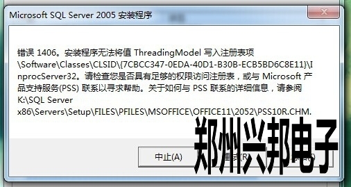 客戶使用的我們的互聯網一卡通食堂售飯機,在安裝數據庫SQL2005時出現SQL server 2005 錯誤 1406. 未能將值 CLSID或ThreadingModel寫入注冊表項\Software\Classes\PROTOCOLS\Handler\ms-help. 怎么辦