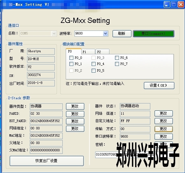2.用配置工具調(diào)試模塊看看panid是否和所要通訊的另一個模塊panid是否相同