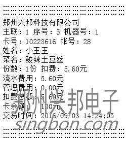 7. 對(duì)一個(gè)用戶(hù)卡,小票打印一體機(jī)在本機(jī)上的當(dāng)次明細(xì)以小票的形式打印出來(lái),設(shè)置打印張數(shù),以便客戶(hù)報(bào)銷(xiāo)和查賬,進(jìn)行訂餐、取餐、菜單消費(fèi)、直接扣費(fèi)打印小票內(nèi)容各有不同。
