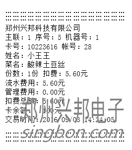 若連接的有打印機(jī),消費(fèi)后可直接進(jìn)行打印,打印內(nèi)容如下圖所示: