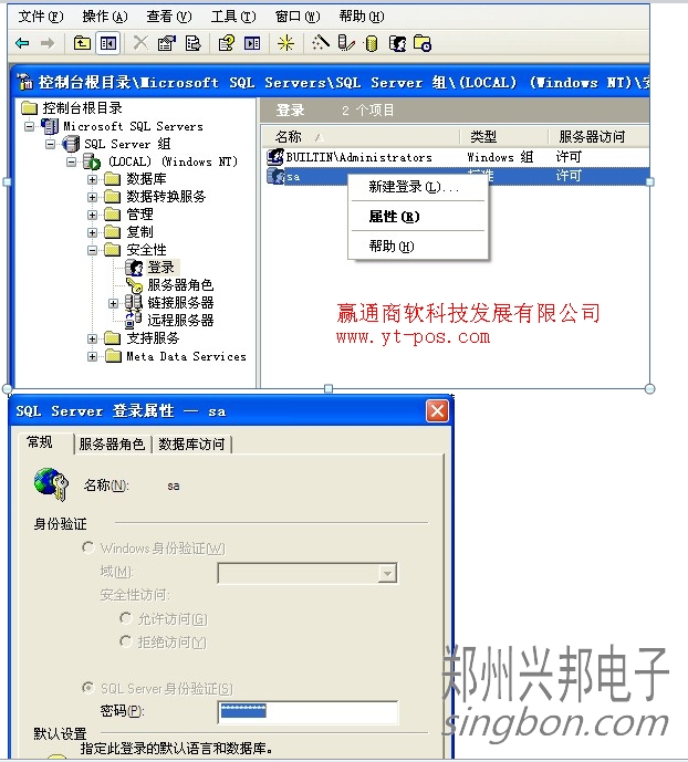 1. SQL2000開始目錄→企業(yè)管理器→SQL Server組→安全性→登陸